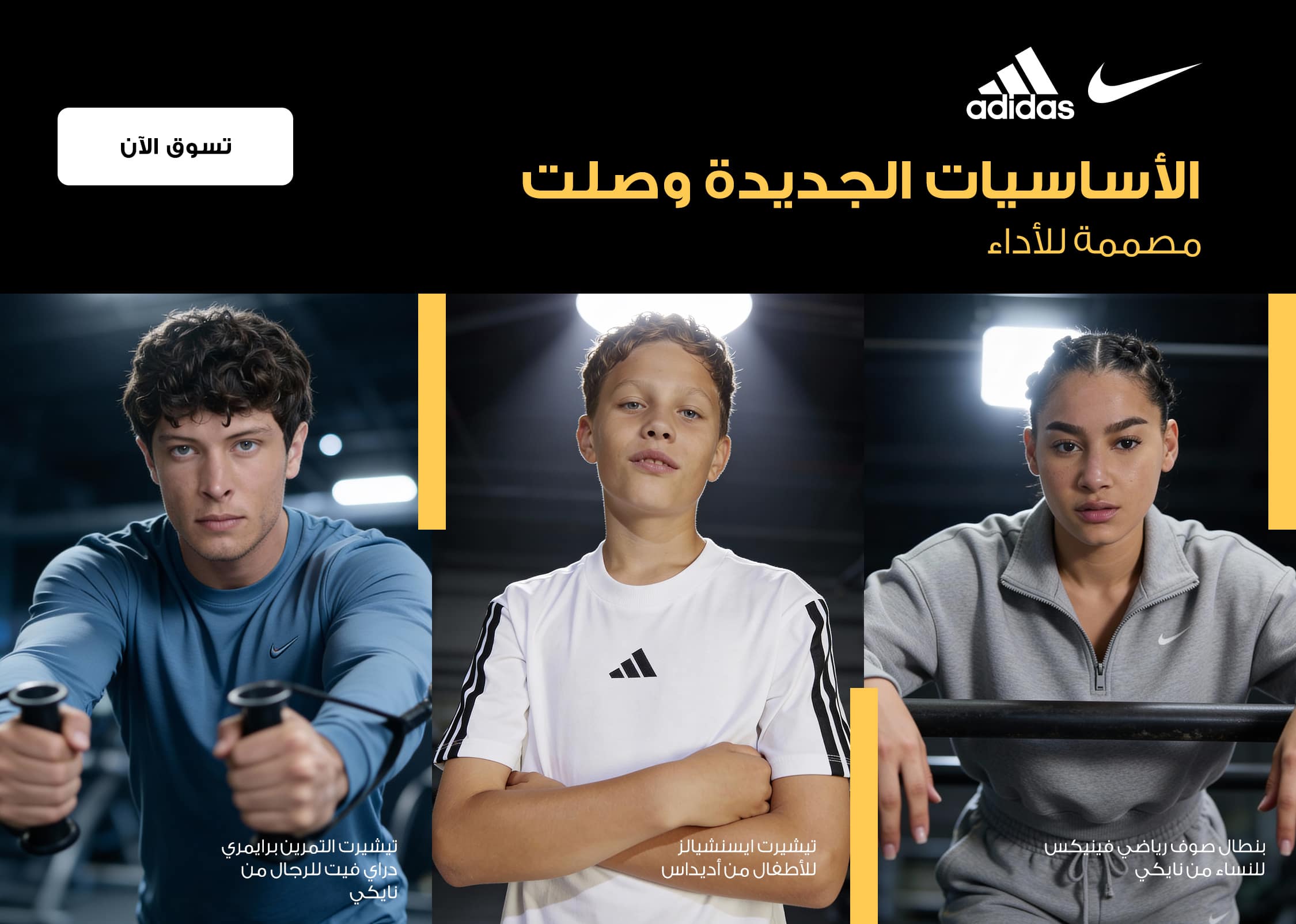 أهلًا بك في سن آند ساند سبورتس، أكبر سلسلة متاجر للرياضة في الشرق الأوسط، حيث تضم أفضل الماركات والعلامات التجارية المتخصصة في الرياضة واللياقة البدنية وأسلوب الحياة اليومية. منتجاتنا الرياضية تحمل اسم أشهر العلامات التجارية العالمية، مثل جوردان, نايك واديداس وبوما بالإضافة إلى منتجات الحياة اليومية العصرية بما في ذلك فانس واديداس اورجينال كل ذلك تحت سقف واحد. لا تتردد واتّبع شغفك، انطلق نحو رياضتك المفضلة وتمرّن كرياضي محترف مع مجموعتنا المختارة من ملابس واحذية رياضية وادوات ومعدات واجهزة تناسب جميع الرياضات لأفضل أداءٍ على الإطلاق. مهما كان نوع نشاطك أو مغامرتك، قد يكون ما يلزمك حذاء كرة قدم للأطفال للملاعب العشبية أو للصالات المغلقة أو أحذية الرجال أو جاكيت أو بنطال رياضي للنساء أو للأنشطة خارج المدرسة للاطفال أو أطقم رياضة كرة القدم للأطفال، كل ذلك وأكثر تقدمه لك متاجر